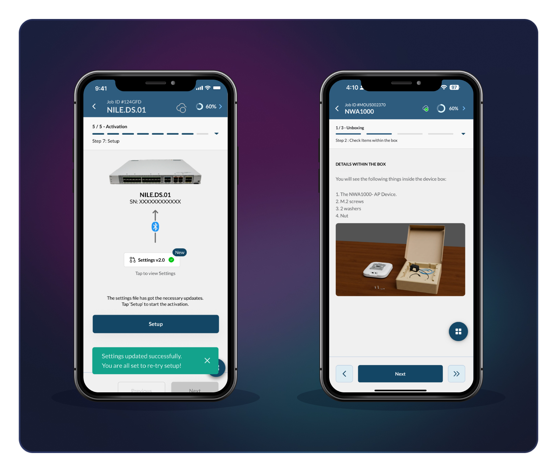 The foundation of any successful deployment starts with meticulous planning. With the Nile Nav app our partners and customers that prefer to do-it-yourself (DIY) receive step-by-step assistance, ensuring that every detail is accounted for from the outset.
