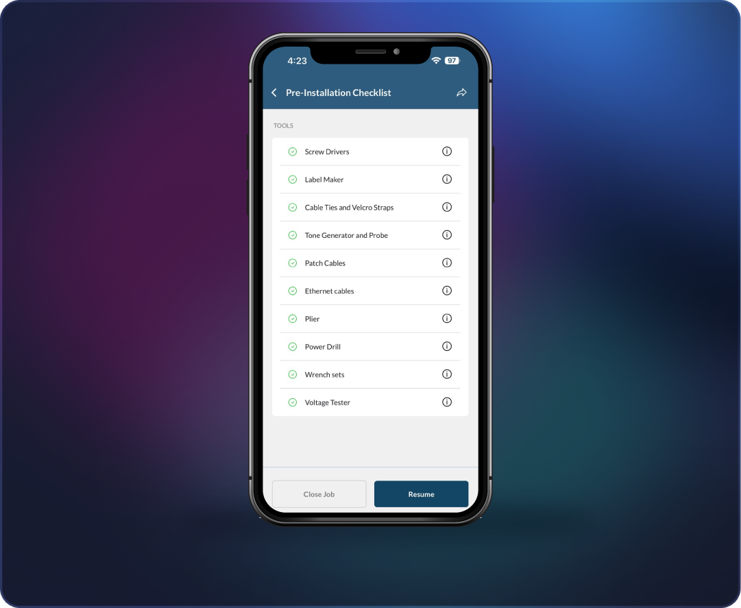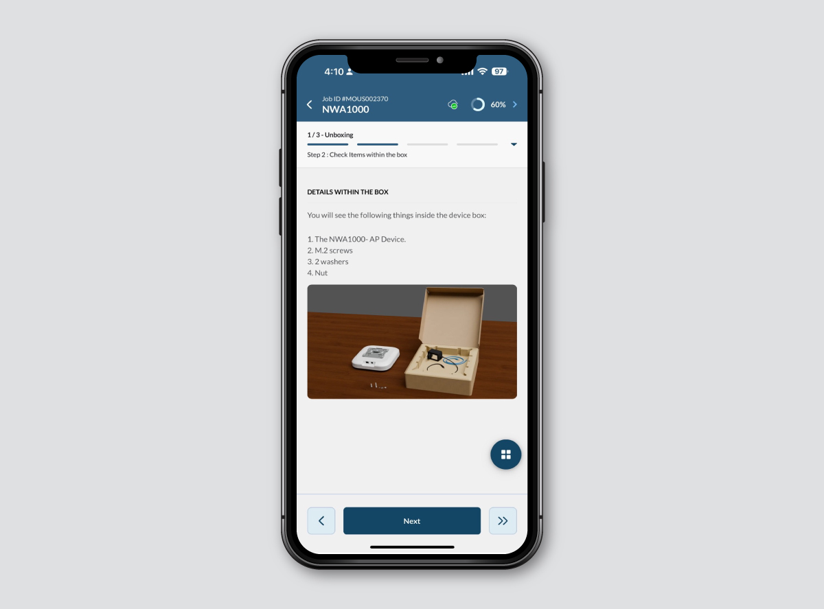 Before you arrive at the installation site, Nile Nav equips you with precise site, building, and floor instructions, along with a list of required tools.