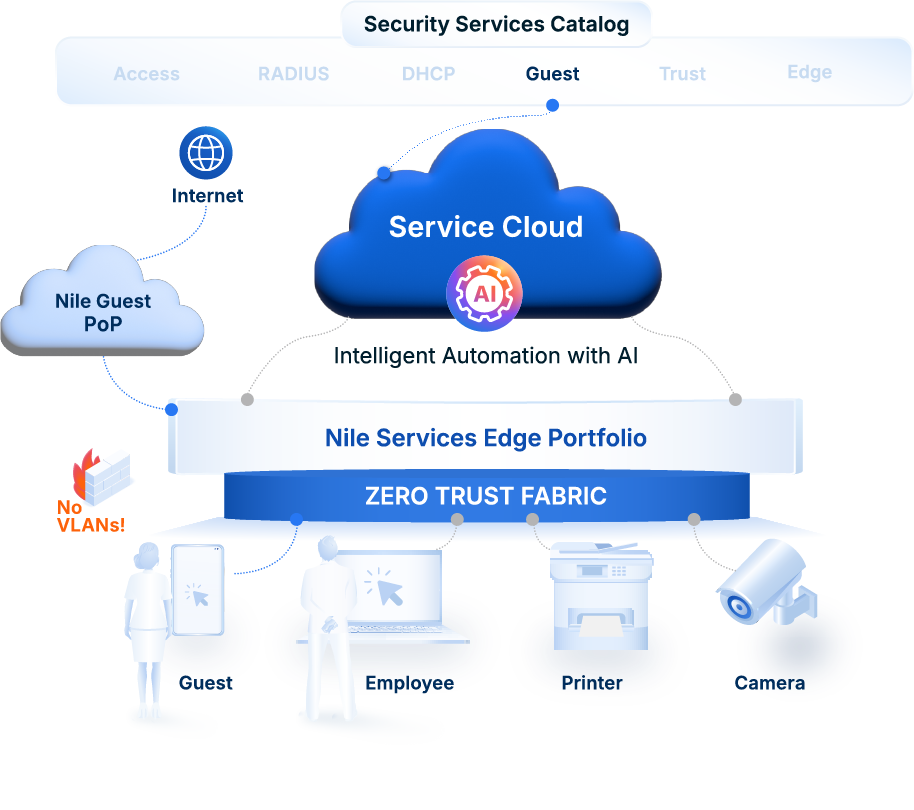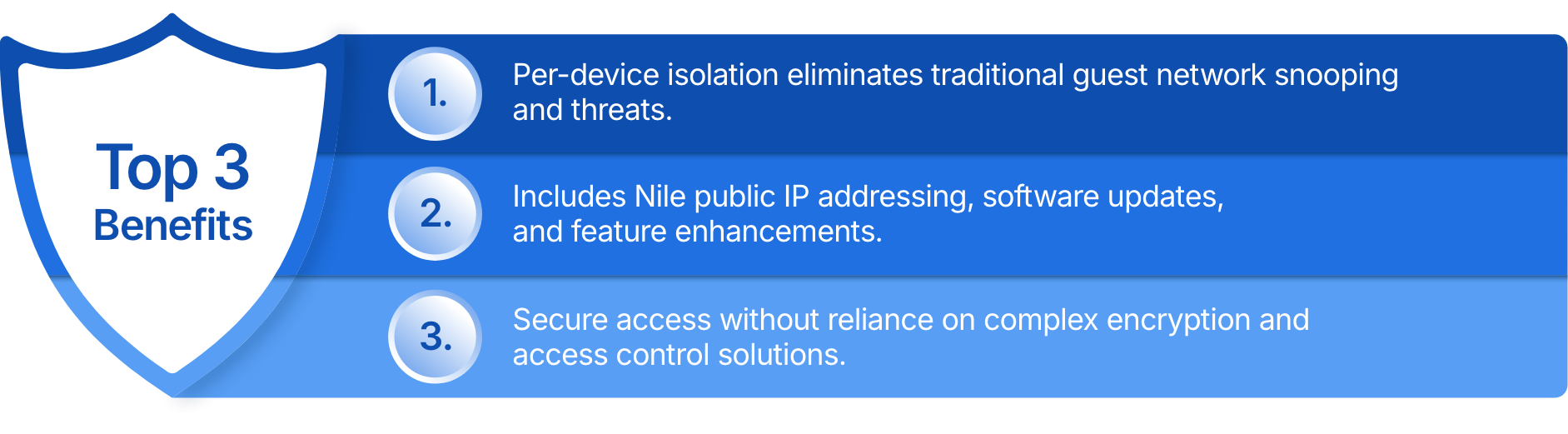 All guest traffic isolated and tunneled to a Nile-hosted cloud PoP for ultimate Zero Trust protection.