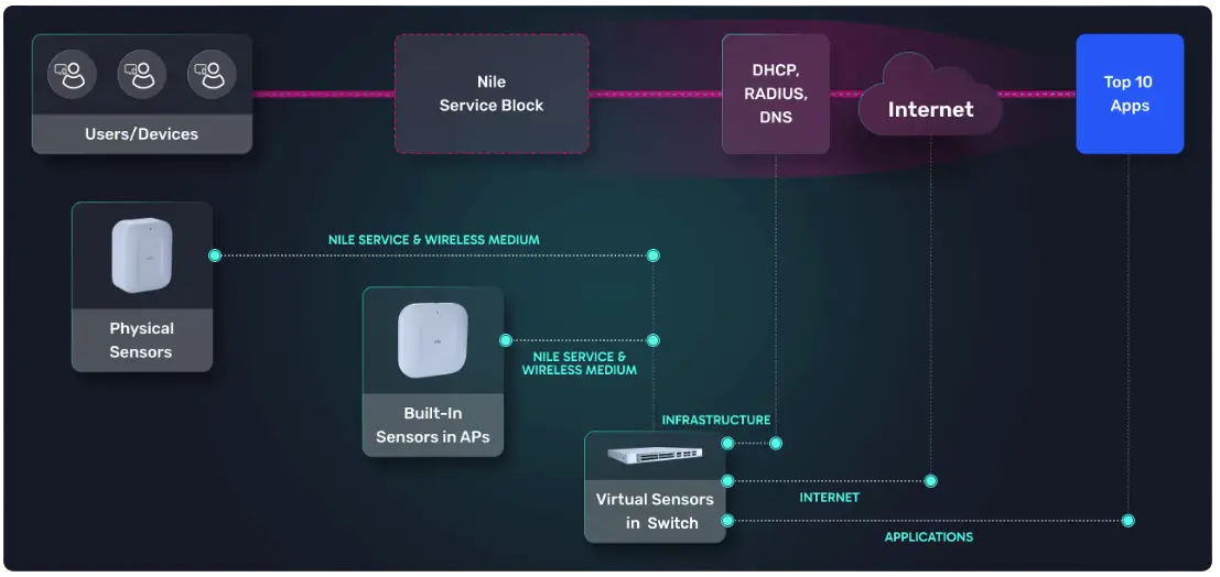 Available in four different form factors to deliver wired and wireless connectivity to customers of any size. Nile switches are architected with high availability, tamper-proof design, Campus Zero Trust endpoint isolation, cloud management, and advanced AI automation features. Access switches include up to 48 MultiGigabit PoE+ ports, 4 10/25Gbps uplinks, and 2 100 Gbps ring ports. Distribution switches size up to 28 10/25 Gbps ports, 3 25/40/100 Gbps ports, and 3 40/100 QSFP ports. Most offer dual redundant load-sharing power supplies and hot-swappable fans.